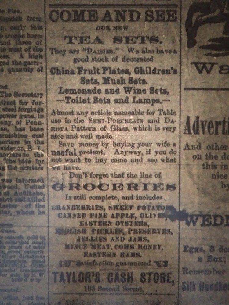 As found in the December 22nd 1888 Humboldt Daily Standard.
