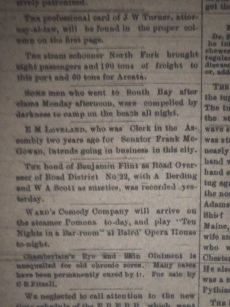 As found in the January 3rd 1889 Daily Humboldt Times.