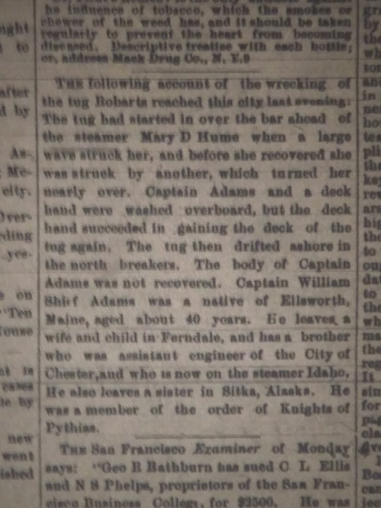 As found in the January 3rd 1889 Daily Humboldt Times.