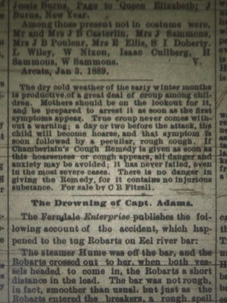 As found in the January 8th 1889 Daily Humboldt Standard.