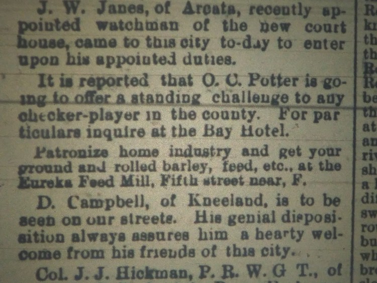 As found in the January 25th 1889 Humboldt Daily Standard.