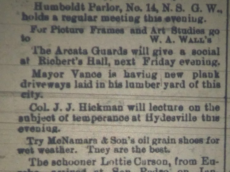 As found in the January 28th 1889 Humboldt Daily Standard.