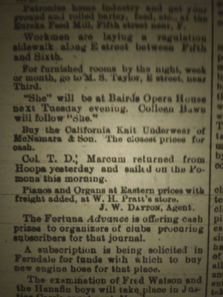 As found in the February 2nd 1889 Humboldt Daily Standard.