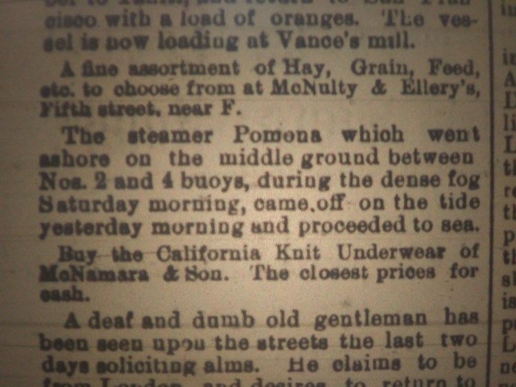 As found in the February 11th 1889 Humboldt Daily Standard.