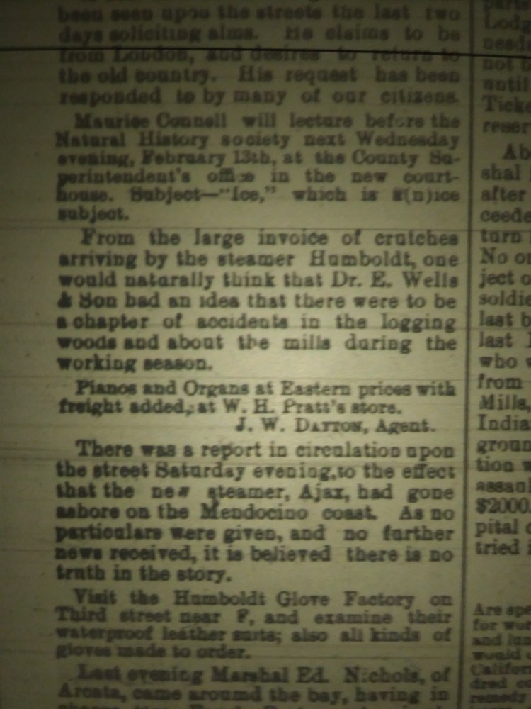 As found in the February 11th 1889 Humboldt Daily Standard.