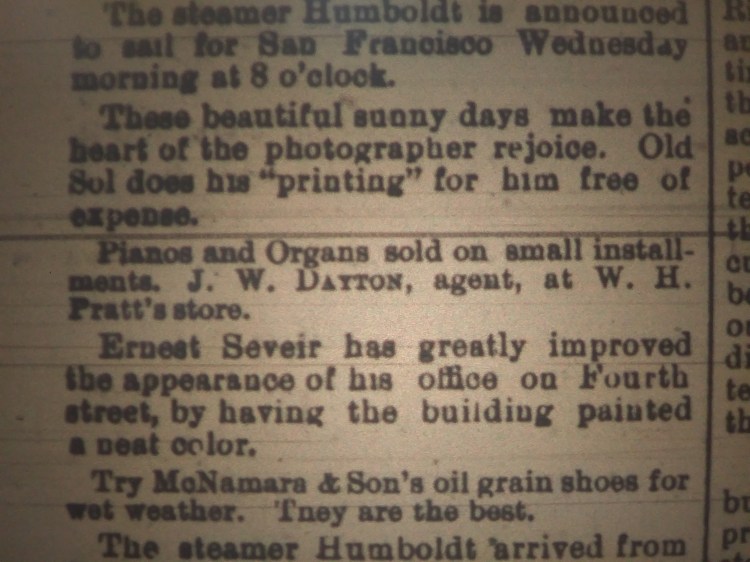 As found in the February 11th 1889 Humboldt Daily Standard.