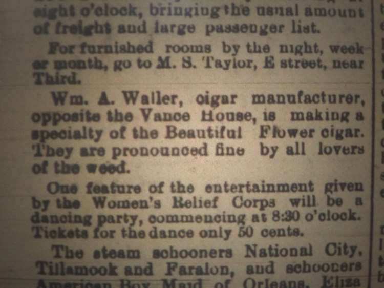 As found in the February 11th 1889 Humboldt Daily Standard.