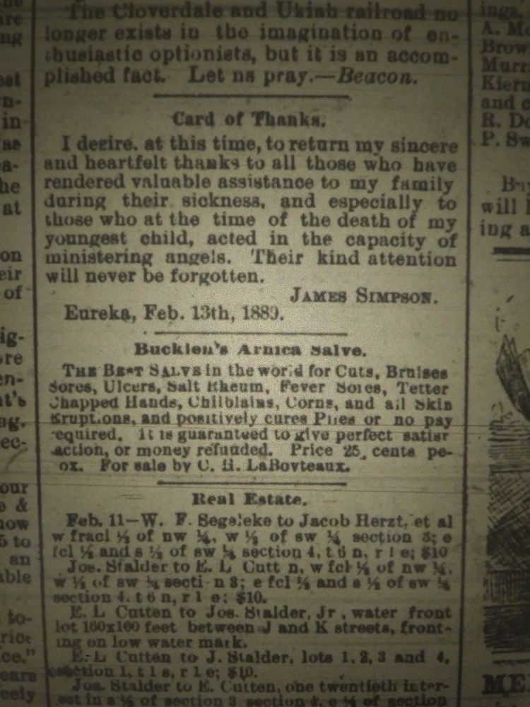 As found in the February 13th 1889 Daily Humboldt Times.