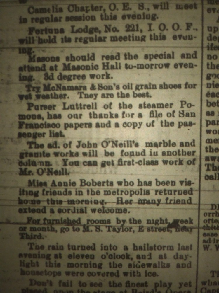 As found in the February 15th 1889 Humboldt Daily Standard.