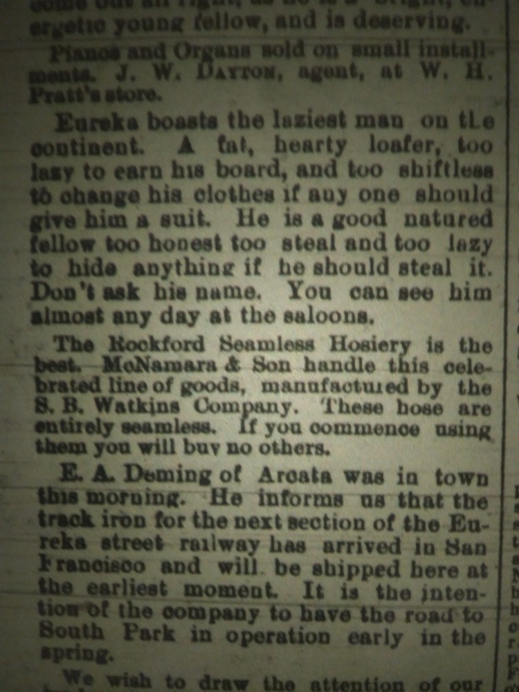 As found in the February 16th 1889 Humboldt Daily Standard.