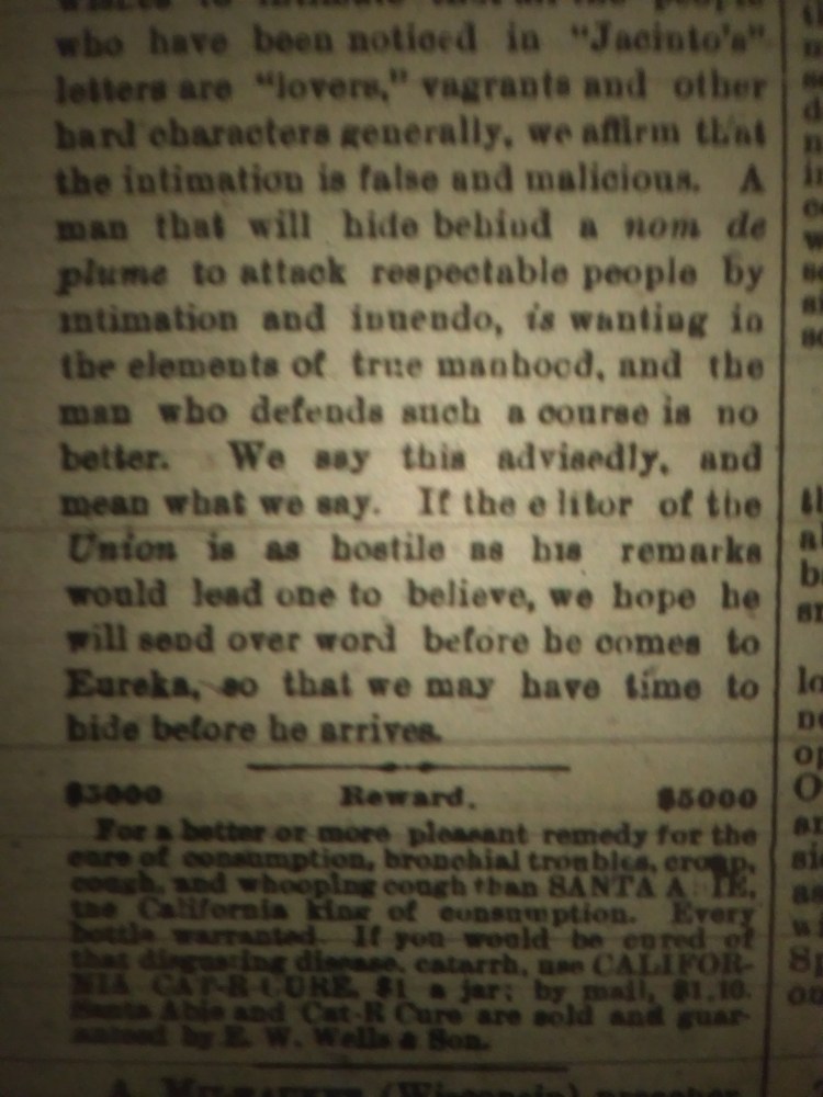 As found in the February 16th 1889 Humboldt Daily Standard.