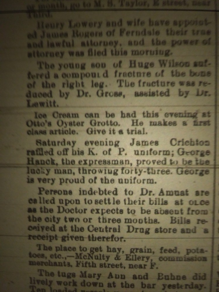 As found in the February 18th 1889 Humboldt Daily Standard.