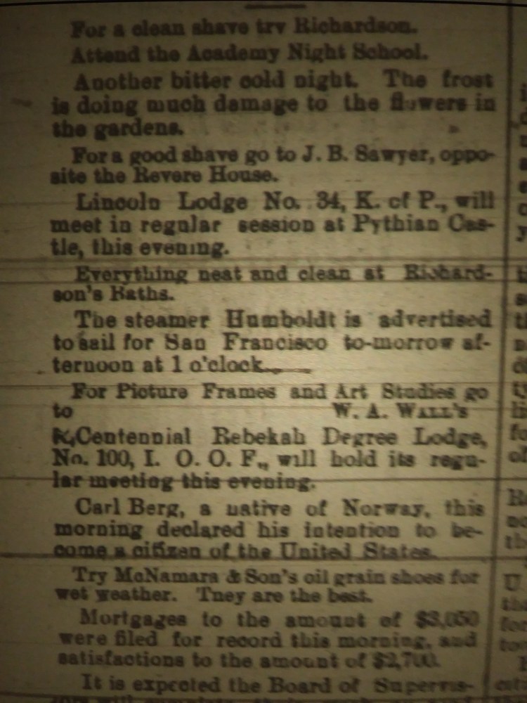 As found in the February 19th 1889 Humboldt Daily Standard.