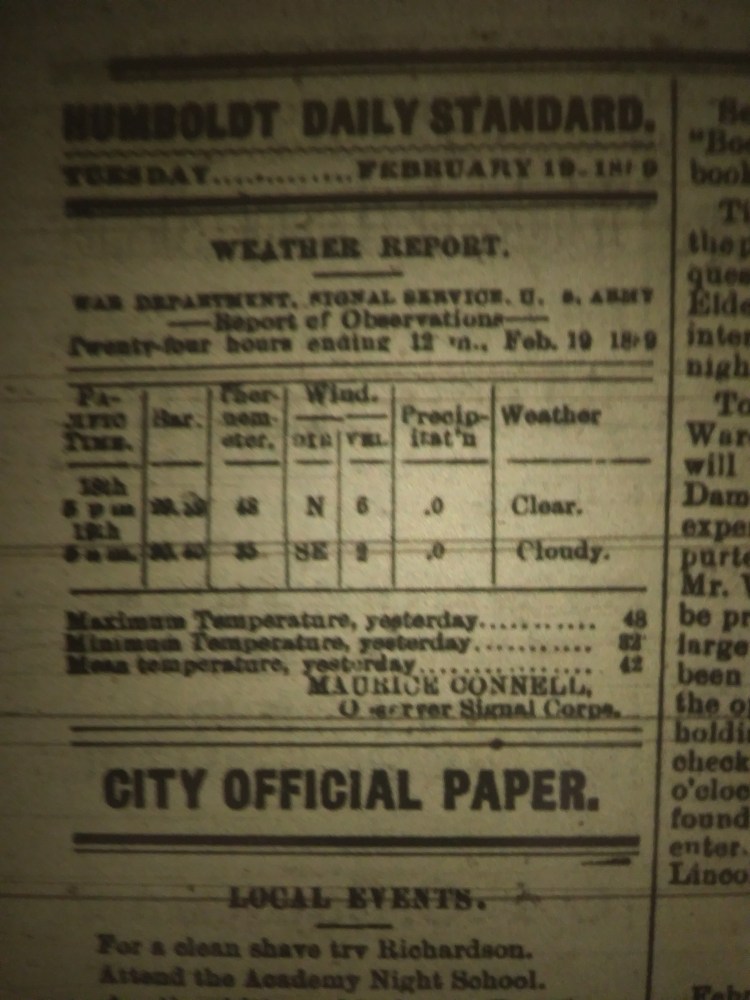 As found in the February 19th 1889 Humboldt Daily Standard.