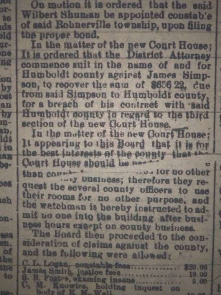 As found in the February 21st 1889 Humboldt Daily Standard.