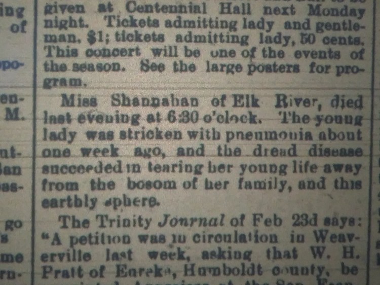 As found in the February 28th 1889 Humboldt Daily Standard.