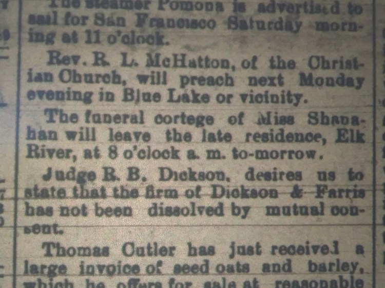 As found in the February 28th 1889 Humboldt Daily Standard.