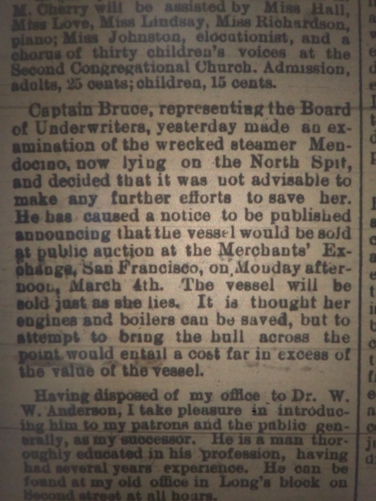 As found in the March 1st 1889 Humboldt Daily Standard.