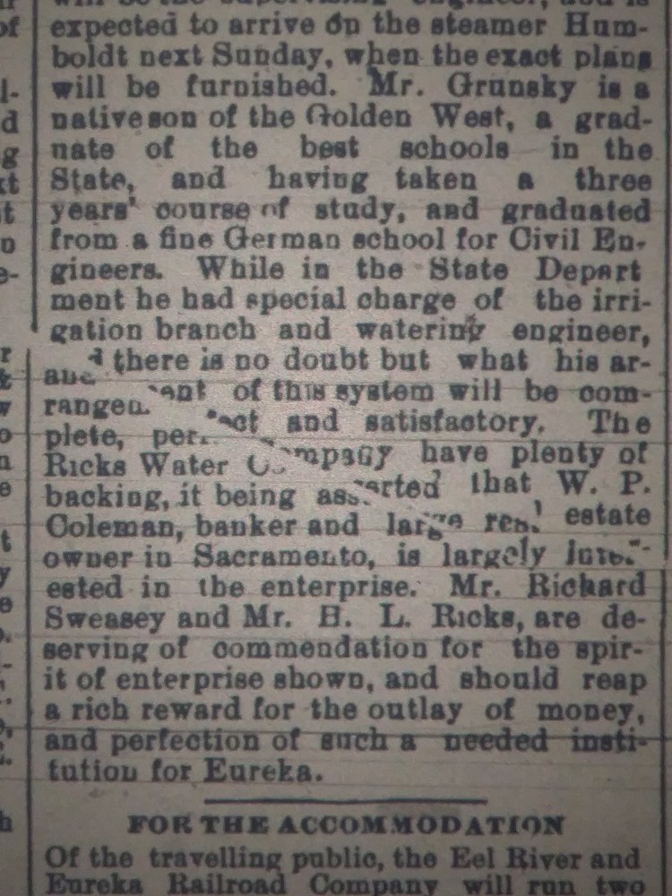 As found in the March 7th 1889 Humboldt Daily Standard.