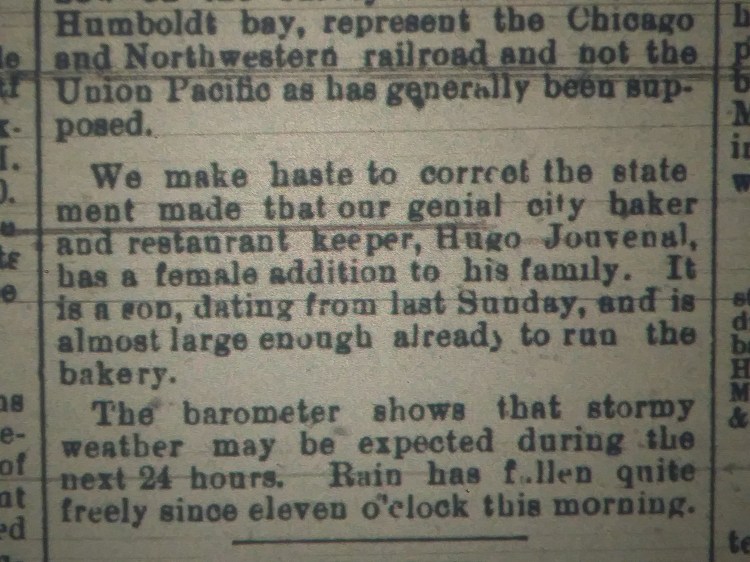 As found in the March 15th 1889 Humboldt Daily Standard.