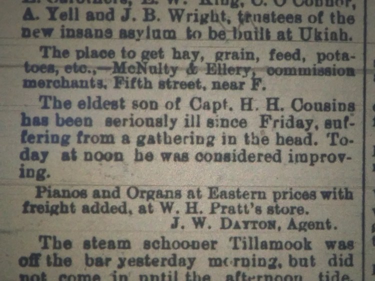As found in the March 11th 1889 Humboldt Daily Standard.