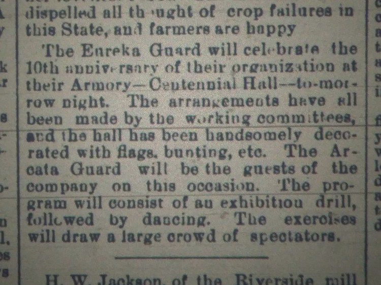 1889.03.15 Eureka Guard 10th Anniversary