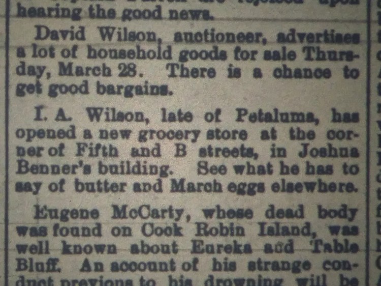 As found in the March 25th 1889 Humboldt Daily Standard.