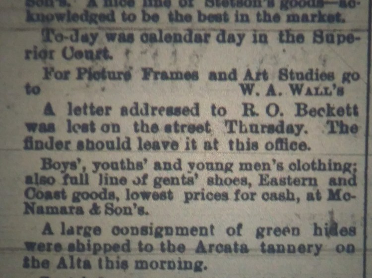 As found in the April 1st 1889 Humboldt Daily Standard.