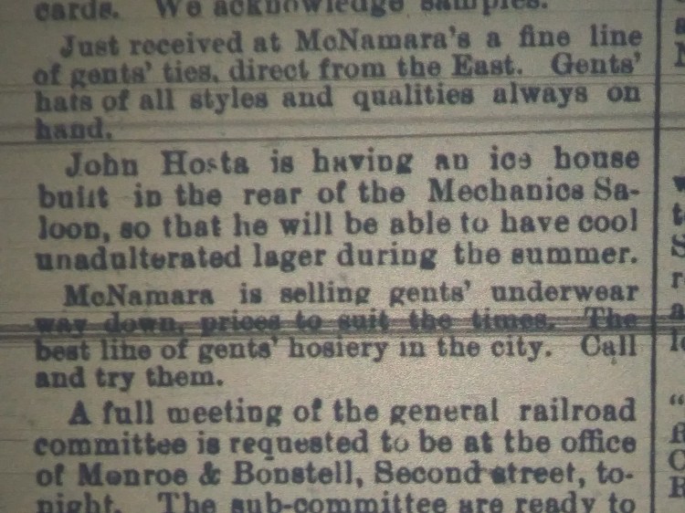 As found in the April 20th 1889 Humboldt Daily Standard.