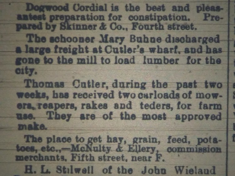 As found in the April 23rd 1889 Humboldt Daily Standard.