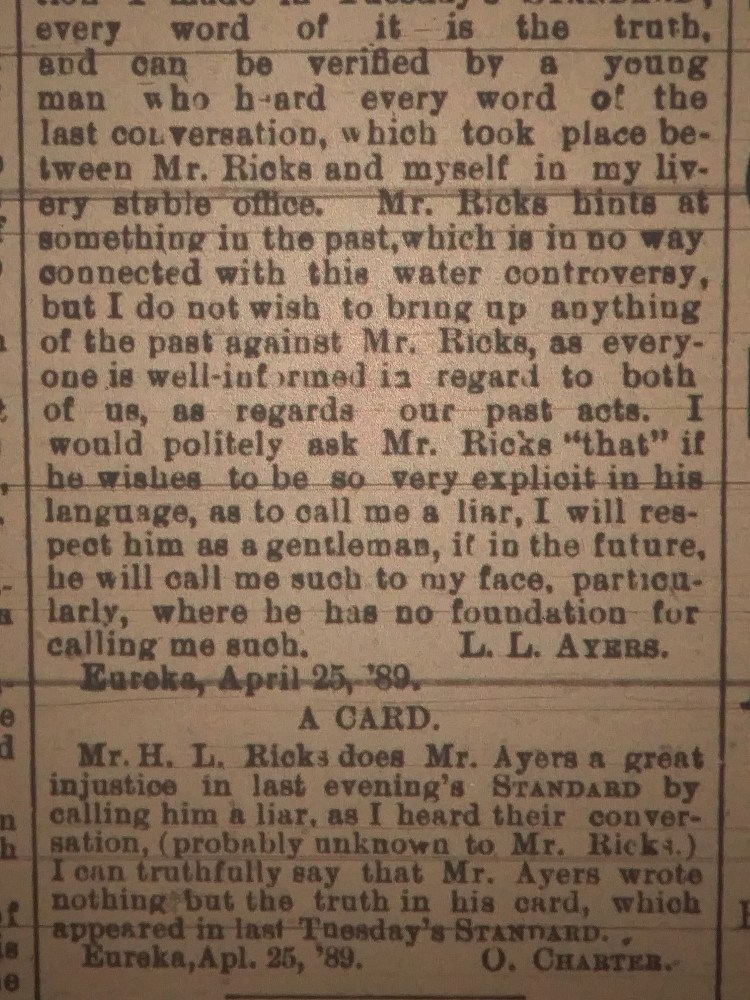 As found in the April 25th 1889 Humboldt Daily Standard.
