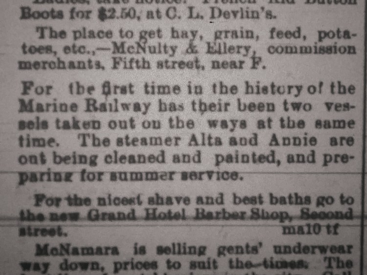 As found in the May 16th 1889 Humboldt Daily Standard.