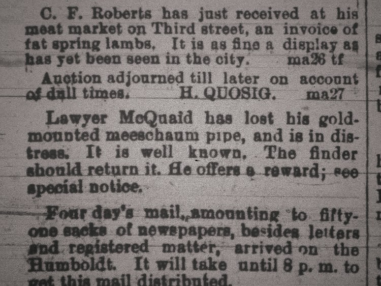 As found in the May 27th 1889 Humboldt Daily Standard.