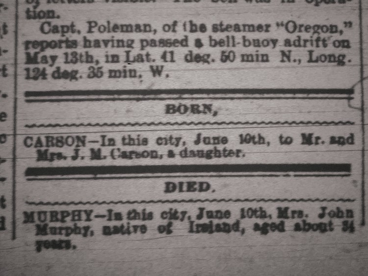 As found in the June 11th 1889 Humboldt Daily Standard.