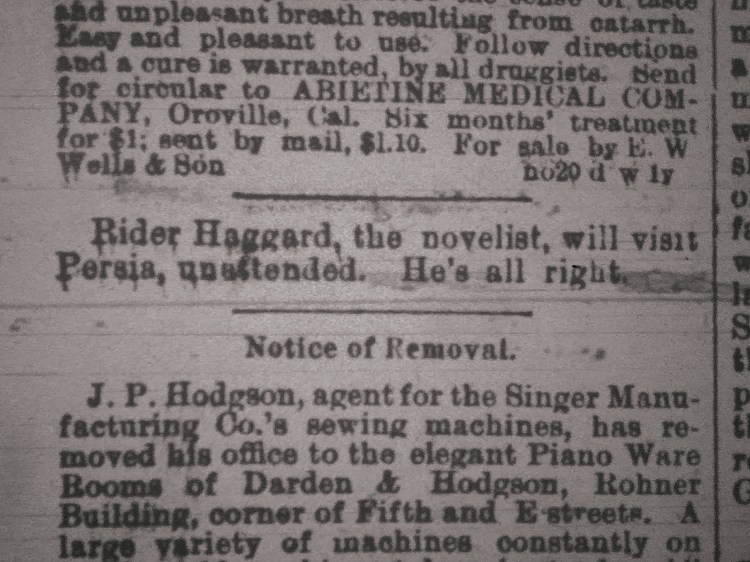 As found in the June 14th 1889 Humboldt Daily Standard.
