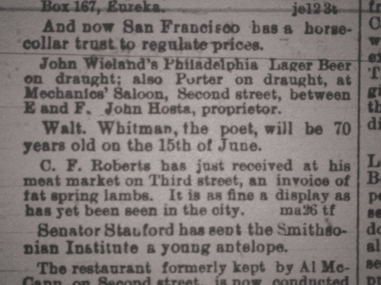 As found in the June 14th 1889 Humboldt Daily Standard.