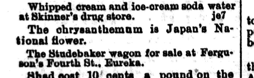 As found in the June 19th 1889 Humboldt Daily Standard.